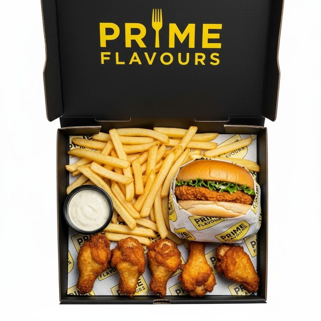 1 X Prime Zinger Blaze Burger, 1 X Chips and Can of Soft Drink or Milkshake