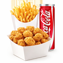 1 X Popcorn Chicken, 1 X Chips and Can of Soft Drink or Milkshake