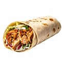 Tender chicken shawarma in a wrap with salad & your choice of sauce.